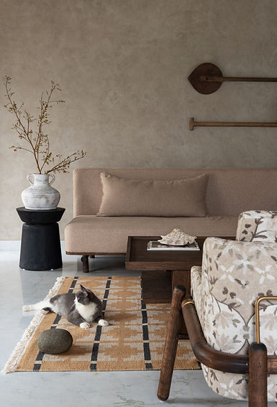 The river dictated everything. We didn’t want to compete with it. Instead, we echoed itsgreys, sands, and silvers. The palette was kept deliberately muted, with layered textures in similar tones to allow the eye to rest and the mind to wander. It’s the kind of scheme thatunfolds over time, rather than revealing everything at once.